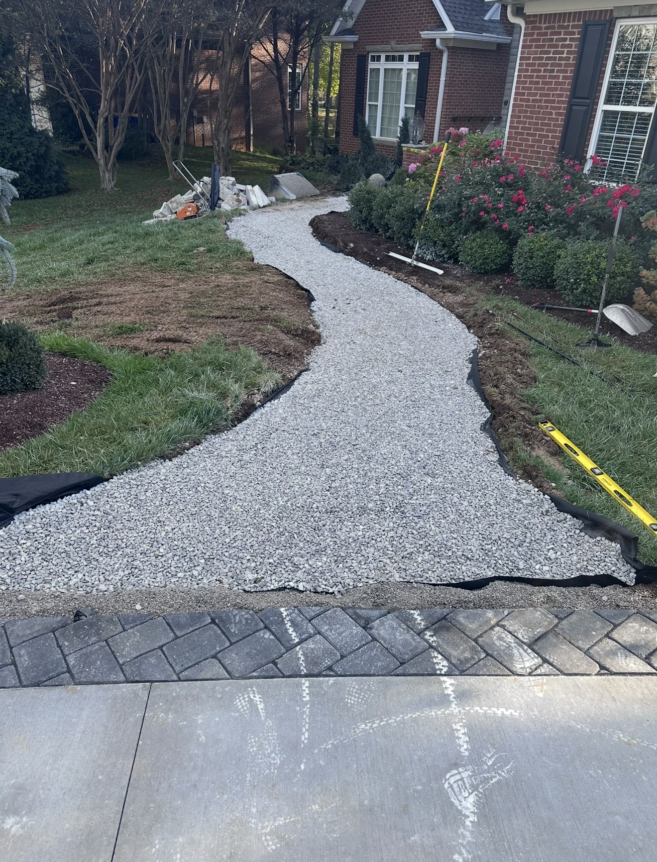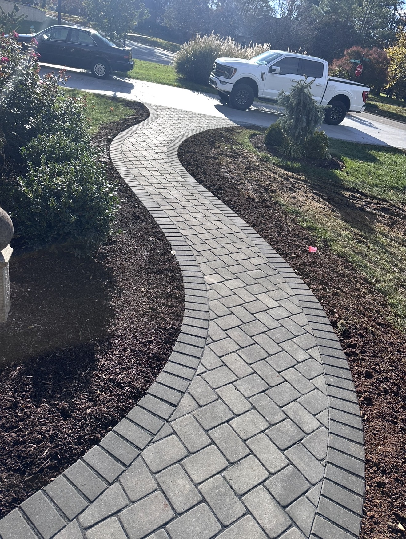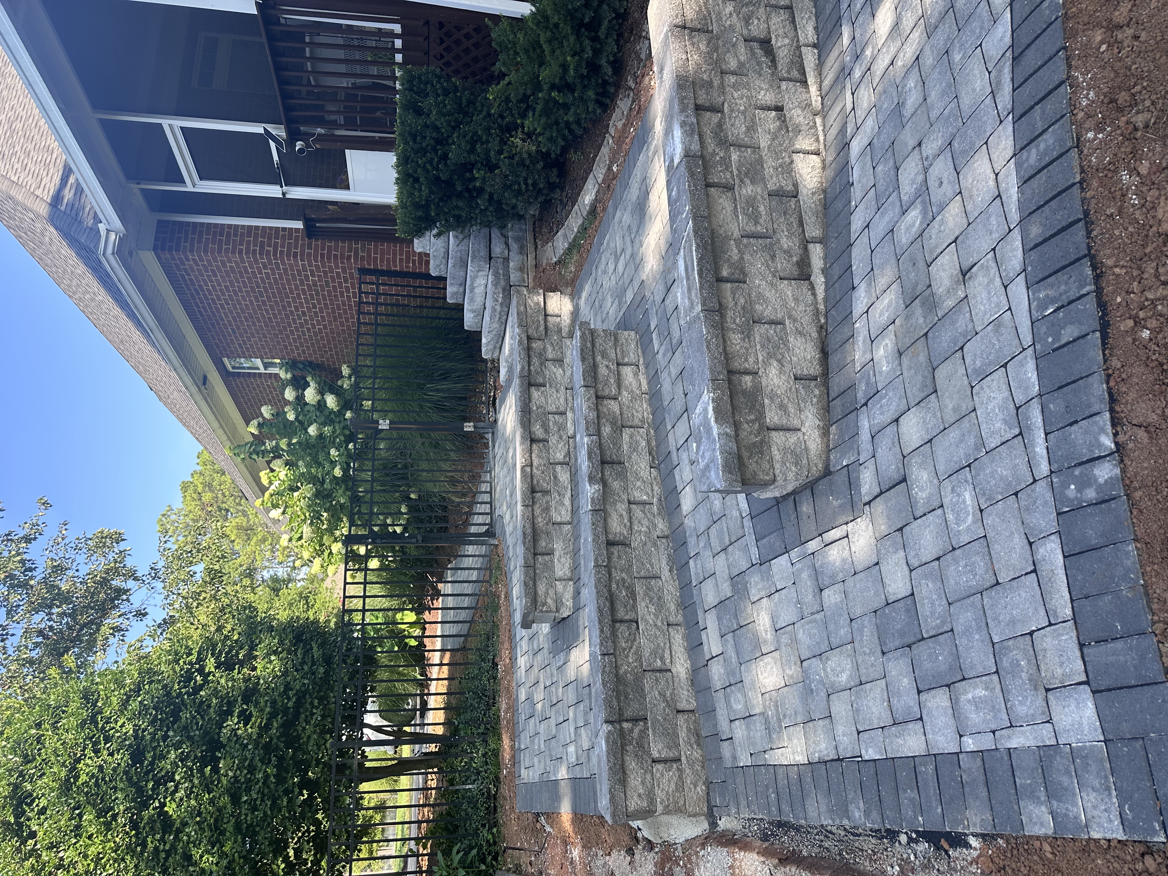 For this project, we removed the existing asphalt driveway and installed a concrete driveway with a paver boarder and paver sidewalks to match.